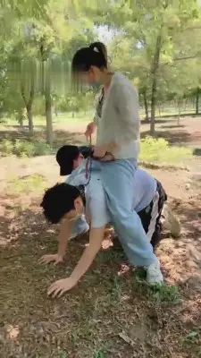 【冷柔原创】冷柔精彩户外爬行比赛遛狗